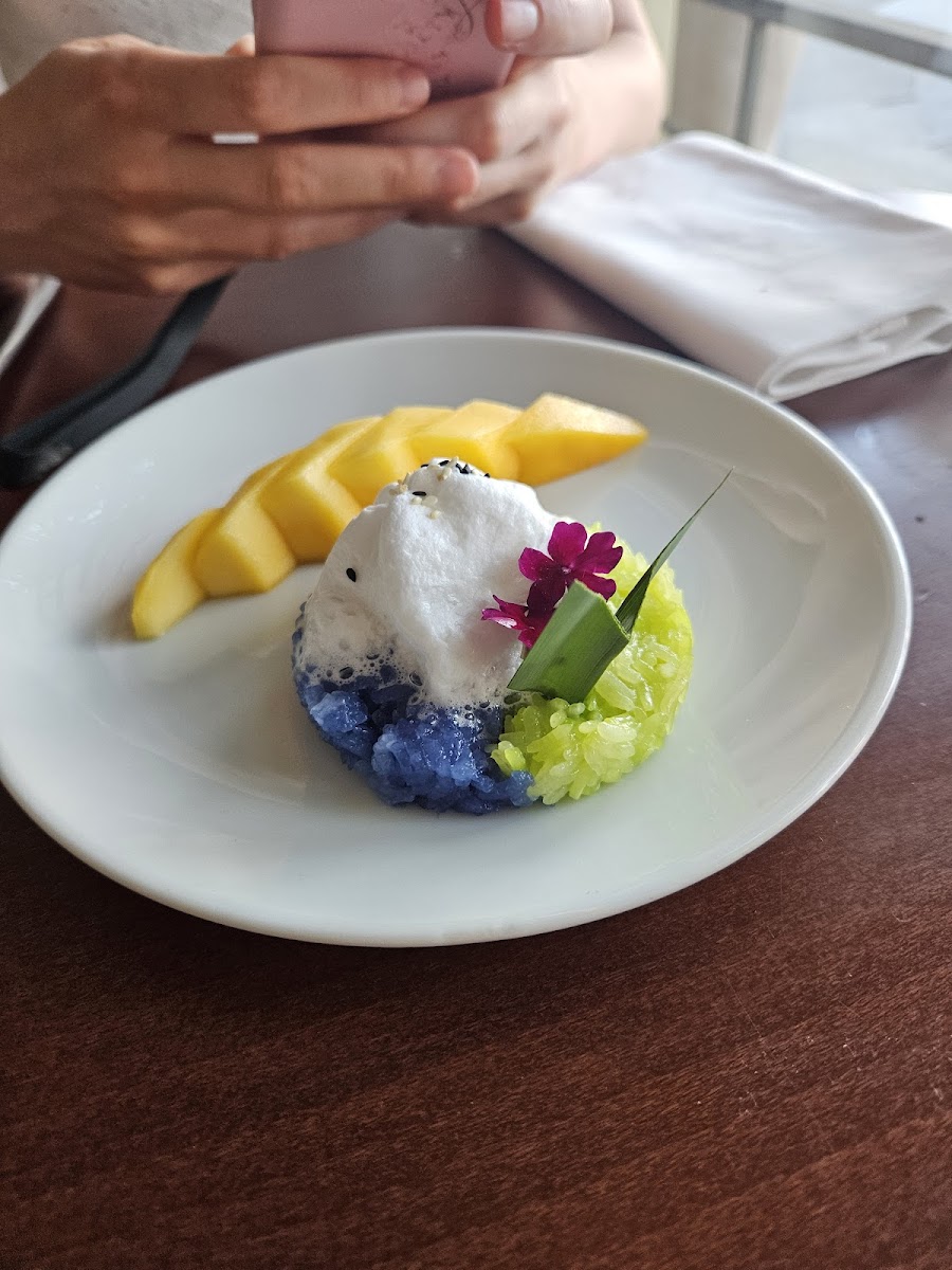 Amazing Thai food is a really cool and unique atmosphere. I had the green mango salad and pork dish. Thought the flavors were excellent for salad and loved that it was actually spicy which can sometimes be harder to find in Europe in my experience. The mango itself could have been a little more firmer and crunchy but I still highly recommend the dish. The addition of tomatoes and dragon fruit was delicious and so fresh. Thought the pork and rice were also good but different than what I was expecting. The pork was like ground beef texture. Portion sizes were large and prices were reasonable. Presentation was also good. I really liked the overall vibe of the restaurant. The decor includes lots of plants and there are also some interesting surprises and talking pieces. With the modern zen vibe I think this would be a good date night restaurant. Looking forward to going back and trying more dishes.